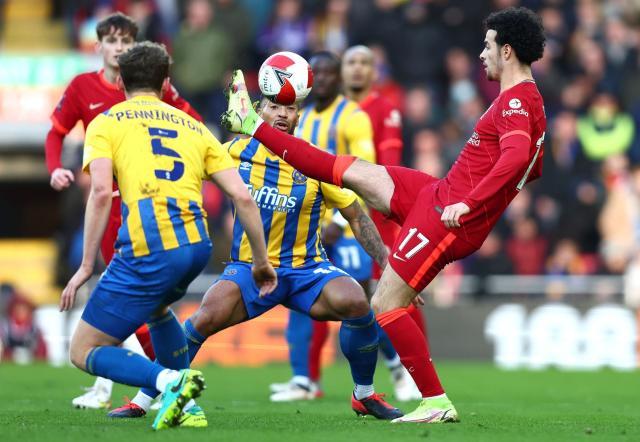 利物浦本场首发了3位主力,范戴克、法比尼奥和和罗伯逊就是压阵来了,其余一水的篮球队号码,差点搞出状况。什鲁斯伯里混杯赛,尤其遇上强队常有不俗发挥,主教练科特里尔还是两次感染新冠劫后余生的人,不免有点运气。一个斜长传打穿利物浦右路防守,马不停蹄传中,中路尤度接应撞射破门。