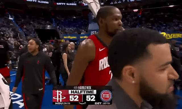 两队今天其实战术都很轻松,都是掐内线,各种协防,谁也别想在篮下得分。但双方也是真的铁,火箭除了杜兰特外,命中率惨淡。而活塞也是怎么投怎么不进。但火箭靠着杜兰特首节还是一度领先11分。可惜第二节杜兰特下场一段时间,火箭替补没跟上,谢泼德上半场表现很一般,投篮出机会了,但确实没找到手感,靠啃老杜兰特半场双方52-52打平。